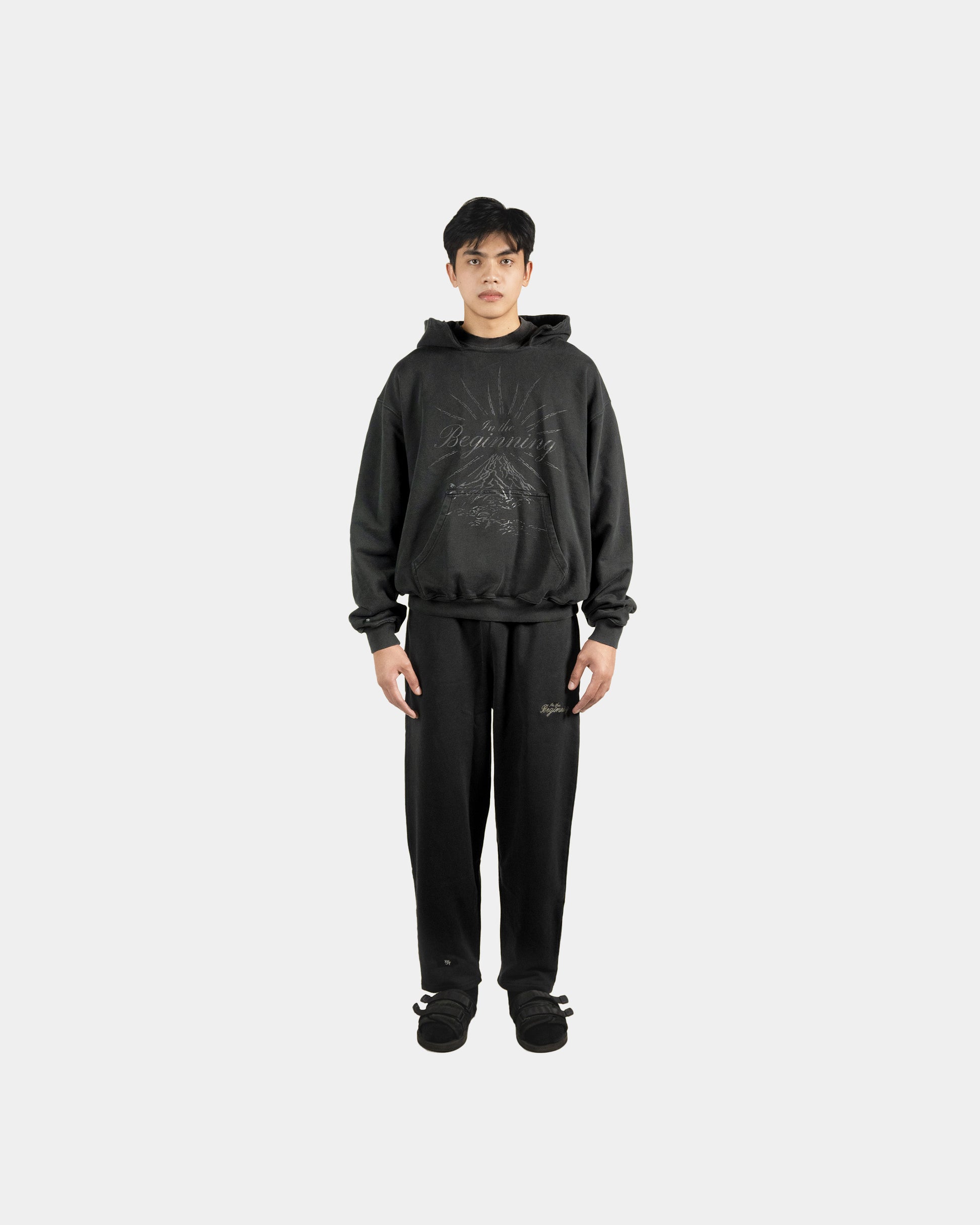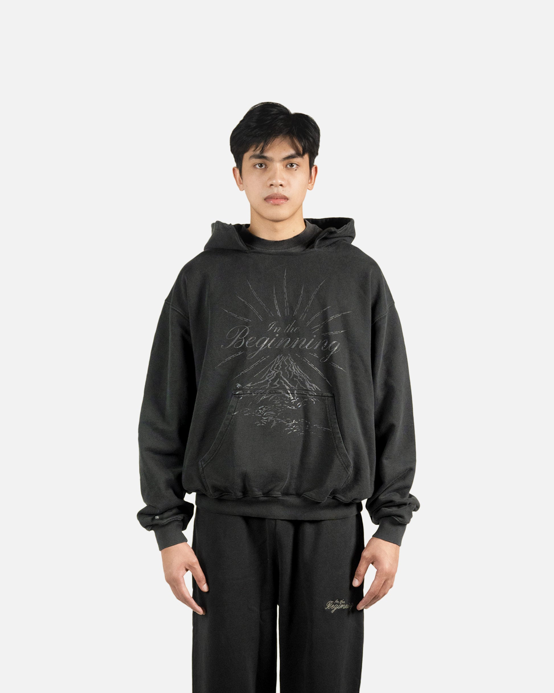 The oversized hoodie is constructed with 100% organic cotton (470 GSM) french terry, that has undergone a specific wash to give a worn and faded look. Structured with an open-neck for a unique silhouette, pre-shrunk by 0-3%, screen printed graphic and chain-stitched embroidered logo on the hood.