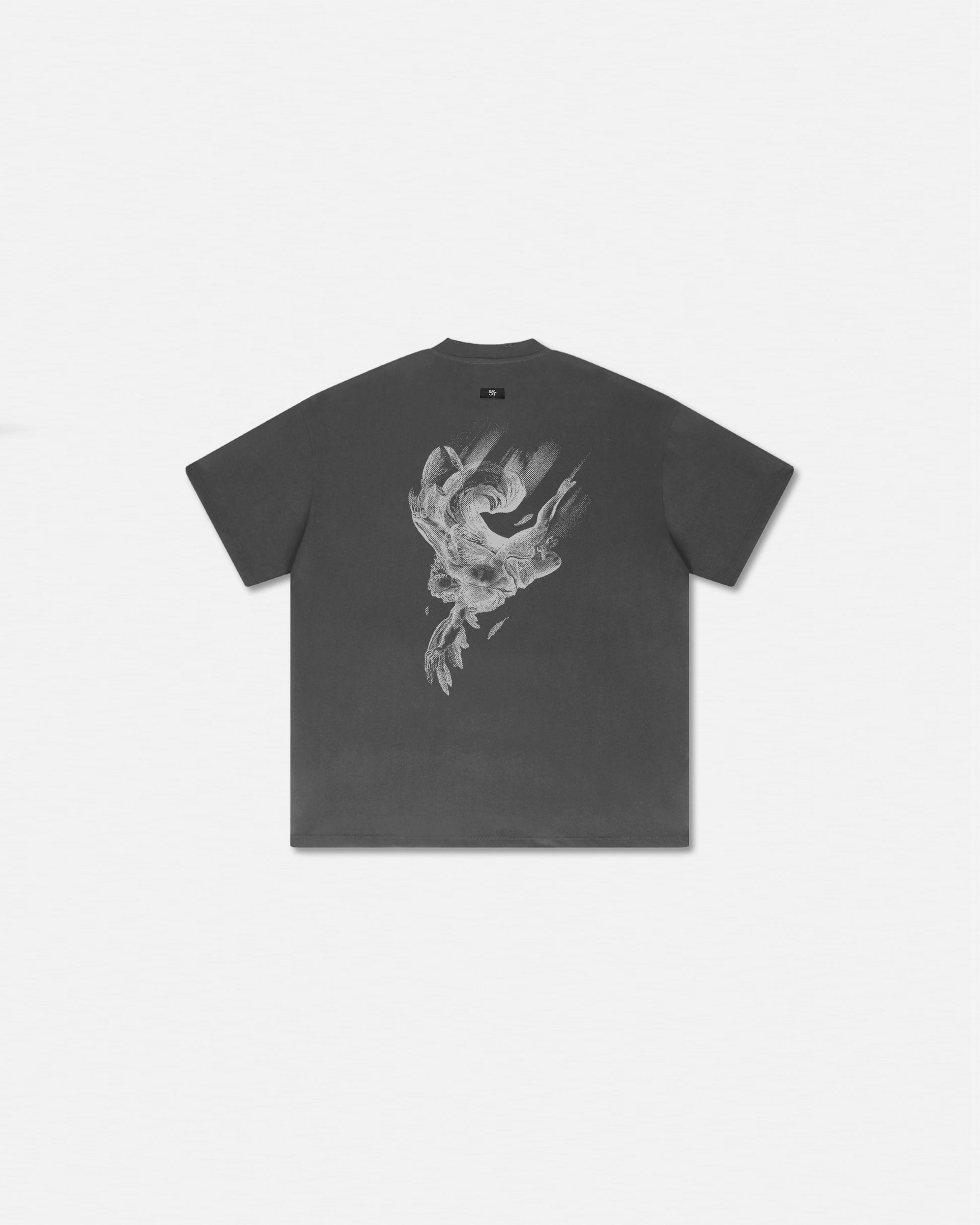 The oversized tee is constructed with 100% cotton (260 GSM), weaved with a knitted type of fabric for a breathable feel. It also includes a subtle acid wash for a more faded look, screen printed graphic and distressed collar.